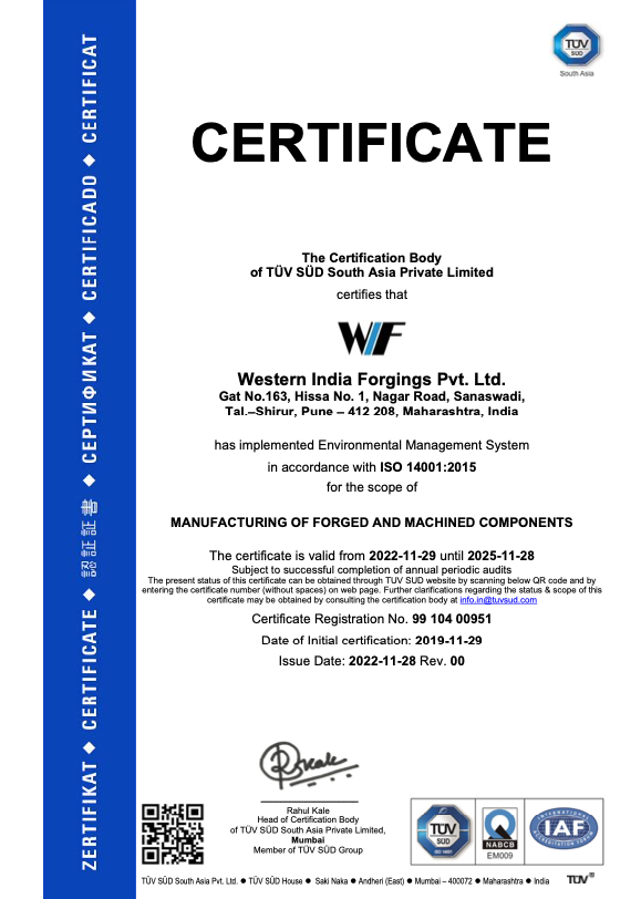 - ISO 14001 as per latest standard 2015, implemented from March 2016